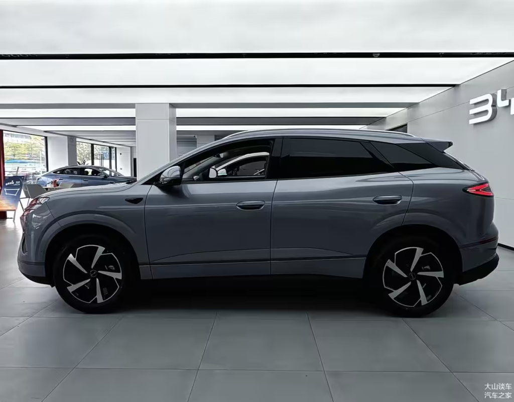 The side profile retains that solid, full fastback shape with strong, dynamic lines. Features like the floating roof, semi-hidden door handles, and 19-inch semi-closed petal wheels remain unchanged. The rear still sports the signature interstellar ring through-type taillight.