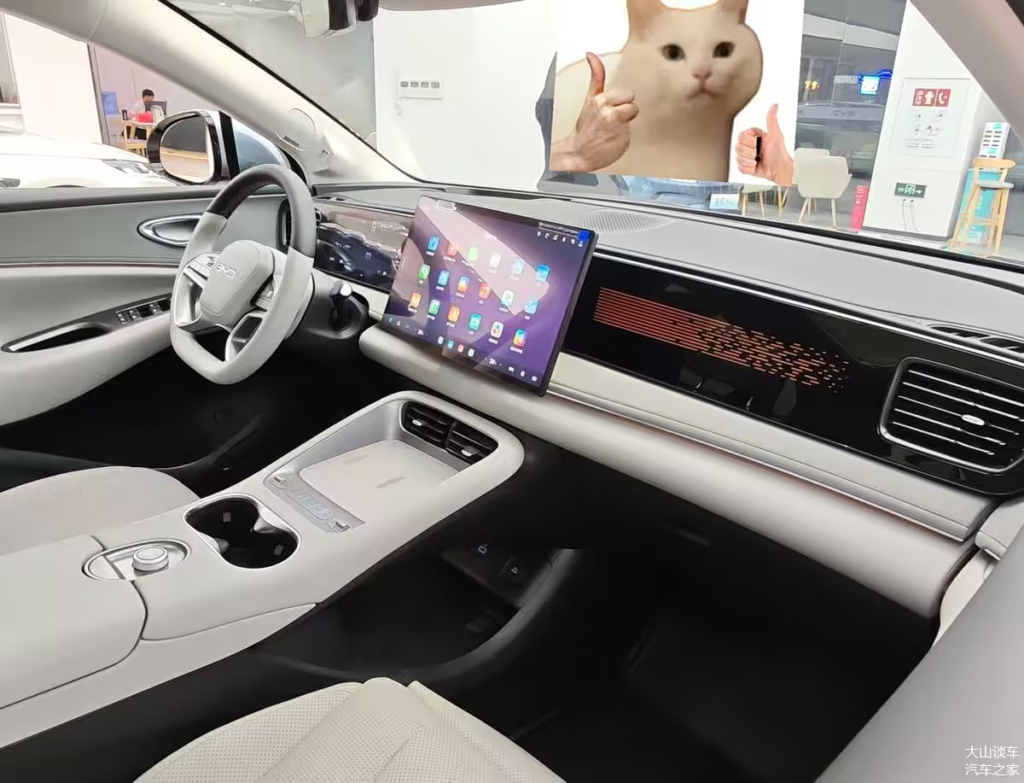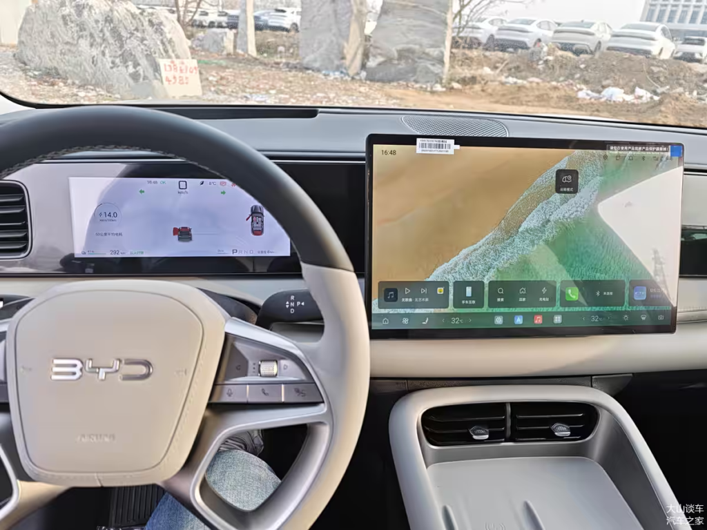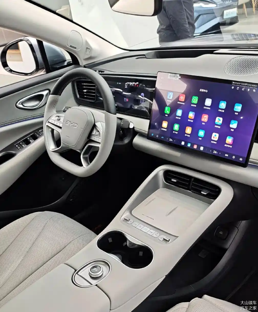The cabin features a full LCD instrument panel on the left, dynamic light-painting ambient lighting for the passenger on the right, and a 15.6-inch floating main screen in the center, complemented by a Head-Up Display (HUD). The infotainment system has been upgraded to DiLink 6.0 with UI optimizations. There is also a fun new “Magic Box Megaphone” feature that allows you to play quirky sound effects or broadcast messages outside the car using the external speakers—kids are going to love this.