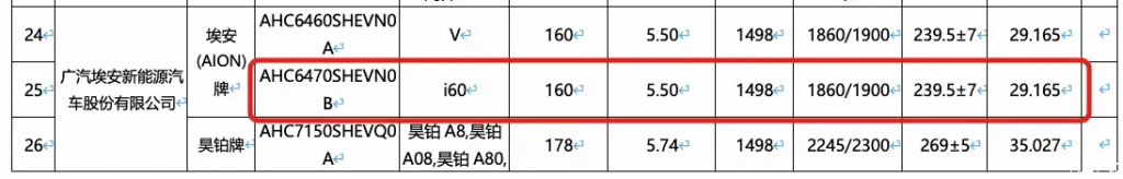 - AION i60 Dimensions: 4685/1876/1660mm (L/W/H)