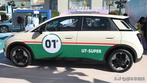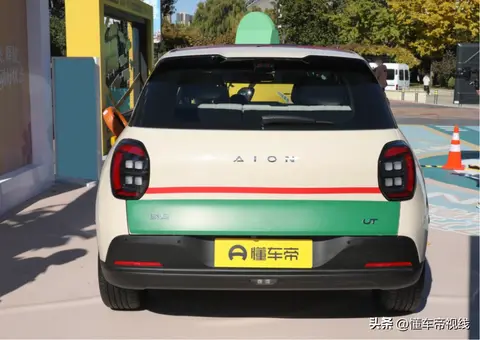 The AION UT super’s exterior design is consistent with the 2025 AION UT. It’s a 5-door, 5-seat compact hatchback. The main visual cues include a special tricolor car wrap and “four-dot” light sources in the headlights and taillights.