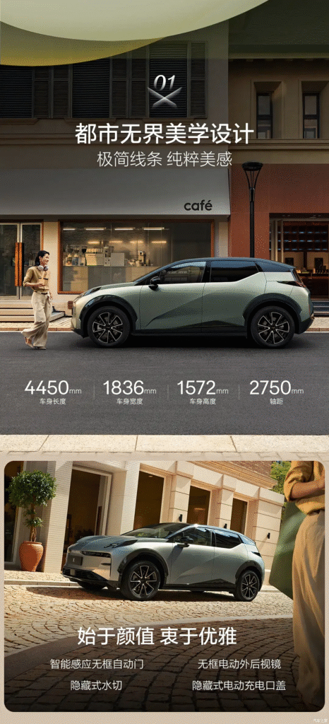 Como atualização anual, o novo Zeekr X mantém o seu atual design “Urban Compact”. Apresenta faróis inteligentes Matrix LED escondidos na grelha para um aspeto futurista. As dimensões do veículo mantêm-se nos 4450 mm de comprimento, 1836 mm de largura e 1572 mm de altura, com uma distância entre eixos de 2750 mm.