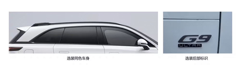 Based on the filing photos, the exterior design of the G9 Ultra remains unchanged from the current model. Indeed, the dimensions are identical (4891/1937/1670mm, L/W/H) with a 2998mm wheelbase. The only subtle change to the standard look is the addition of an “Ultra” badge on the rear.