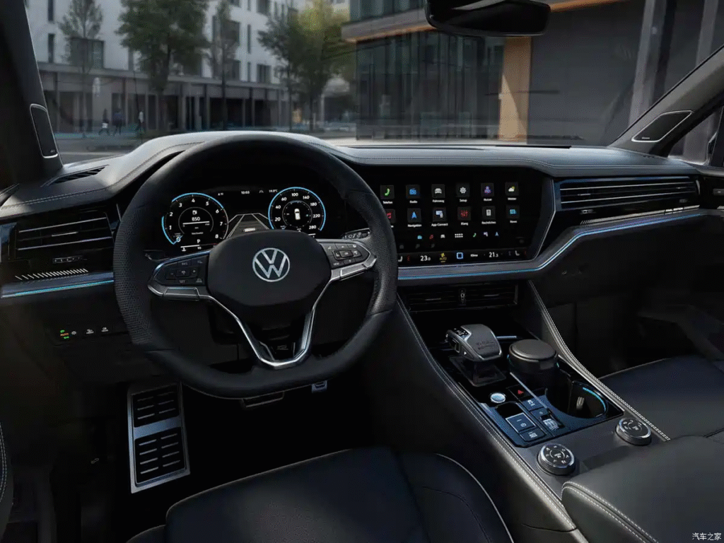Дополнительно, you’ll find R Line logos on the front grille and side panels. A set of black roof rails completes the athletic look. As a reference, the current Touareg is a mid-to-large-sized SUV, measuring 4889mm (L) / 1984mm (W) / 1697mm (H) with a 2899mm wheelbase.